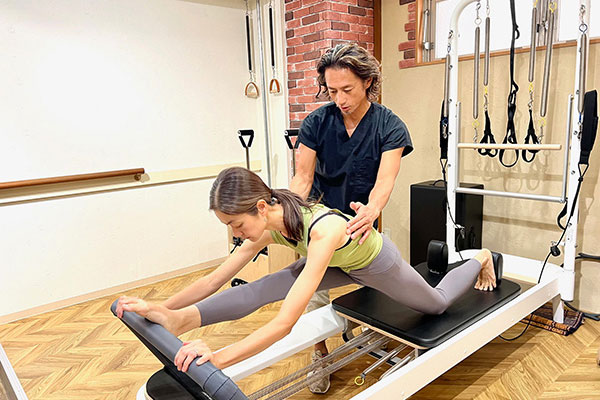 マシンピラティススタジオ併設。パーソナル指導で、一人ひとりのペースに合わせて筋力・体力を取り戻し、美しい姿勢へと無理なく導きます。託児利用OK。
