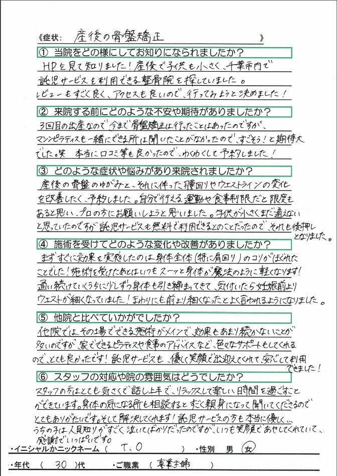 産後で子供も小さく、千葉市内で誕児サービスを利用できる整骨院を探していまし